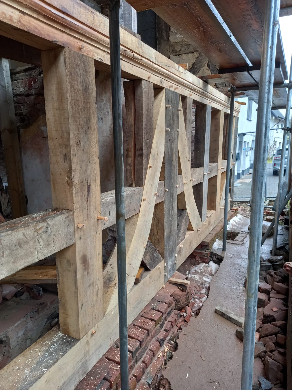 Von 2019 bis 2023 ist einiges passiert. Allein die Beschaffung der Eichenbalken aus der passenden Zeit war eine Herausforderung. Und das in Zeiten knapper Baustoffe…